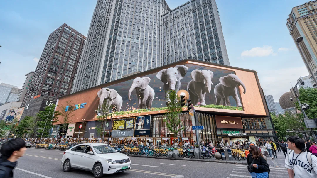 影片將創(chuàng)新數(shù)字技術(shù)與場(chǎng)景營(yíng)銷(xiāo)完美融合,借助兆訊裸眼3D大屏打造栩栩如生的巨幕奇觀,動(dòng)態(tài)花海從屏幕蔓延至現(xiàn)實(shí)街道,與城市景觀融為一體,為人們呈現(xiàn)了一場(chǎng)人與自然共生的公共藝術(shù)視覺(jué)盛宴,引得路人駐足拍照,連連稱(chēng)奇。