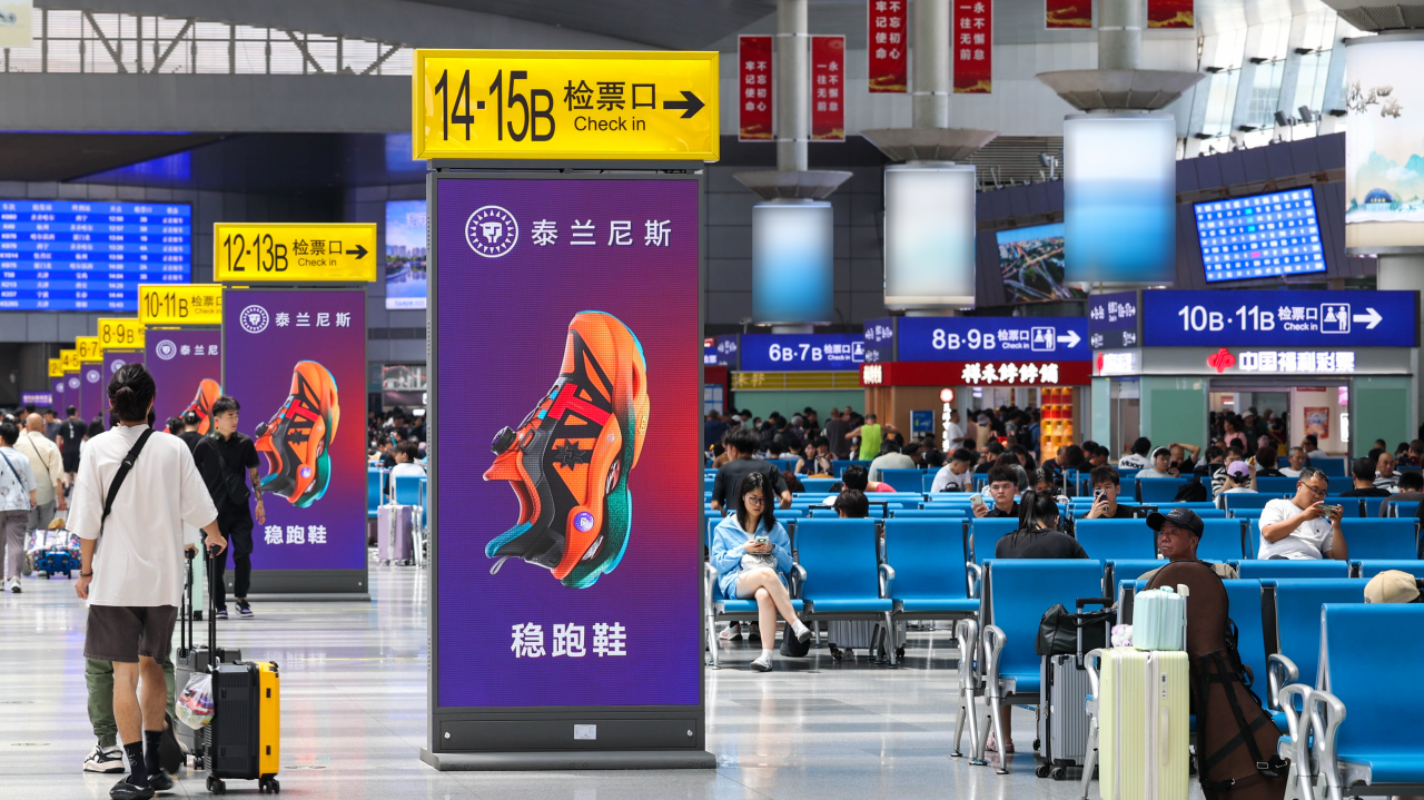 兆訊鎖定客流最為密集的核心候車區(qū),科學(xué)布局旅客乘車必經(jīng)之路,利用高清矩陣式媒體形成統(tǒng)御全場(chǎng)的核心視覺,為泰蘭尼斯構(gòu)建品牌專屬沉浸空間,促進(jìn)泰蘭尼斯與消費(fèi)者之間高頻次、近距離的互動(dòng),筑牢“運(yùn)動(dòng)防護(hù)跑鞋開創(chuàng)者”的品牌認(rèn)知,助推泰蘭尼斯完成從“中國(guó)制造”到“中國(guó)品牌”價(jià)值躍升。
