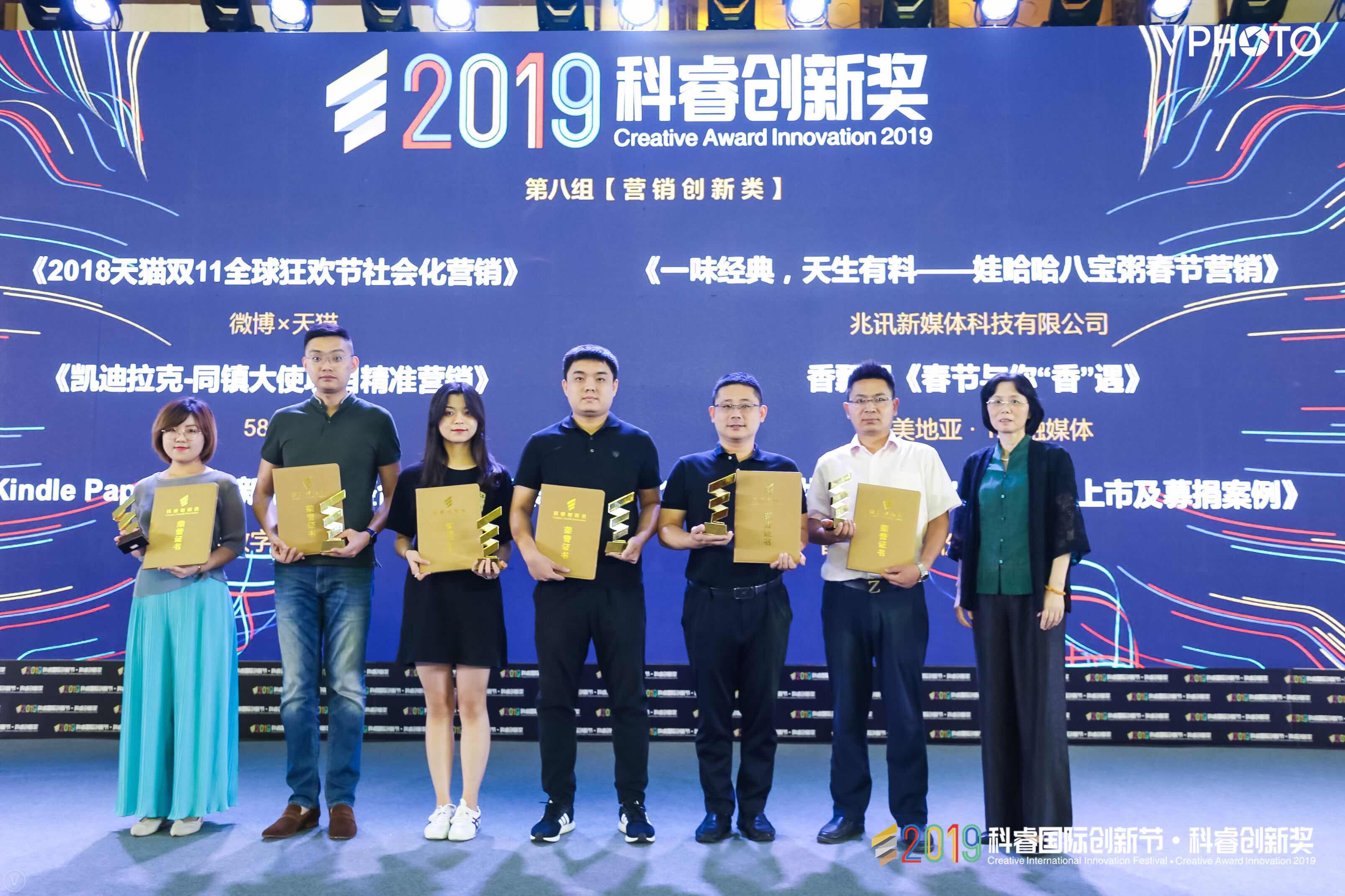 8月23日,2019科睿國際創(chuàng)新節(jié)頒獎(jiǎng)典禮在北京隆重舉行,由兆訊傳媒和娃哈哈共同選送的“一味經(jīng)典,天生有料——娃哈哈八寶粥春節(jié)營銷”案例一舉斬獲營銷創(chuàng)新類金獎(jiǎng)。